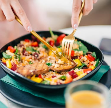 A fome física costuma surgir de forma gradual e pode vir acompanhada de sensações como leve vazio no estômago, queda de energia ou dificuldade de concentração. Já a saciedade aparece como uma sensação de conforto e diminuição natural do interesse pela comida, sem desconforto ou excesso. Observar esses sinais com atenção, comer em um ritmo mais tranquilo e fazer pausas durante a refeição são práticas simples que favorecem o reconhecimento desses limites internos, contribuindo para uma alimentação mais intuitiva e equilibrada.